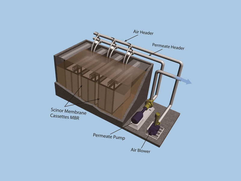 MBR 系列產(chǎn)品采用 TIPS 法制備的 PVDF 增強(qiáng)型中空纖維膜,具有大通量、耐藥洗等特點(diǎn)同時(shí),其機(jī)械強(qiáng)度大大提高,結(jié)合均勻的分絲排布及組器設(shè)計(jì),可降低污泥沉積,減小斷絲風(fēng)險(xiǎn)。組件、膜箱、曝氣及集水優(yōu)化整合為成套過濾系統(tǒng),運(yùn)行能耗降低,膜池占地面積相對(duì)常規(guī) MBR 節(jié)省 1/3,安裝維護(hù)更加便捷。